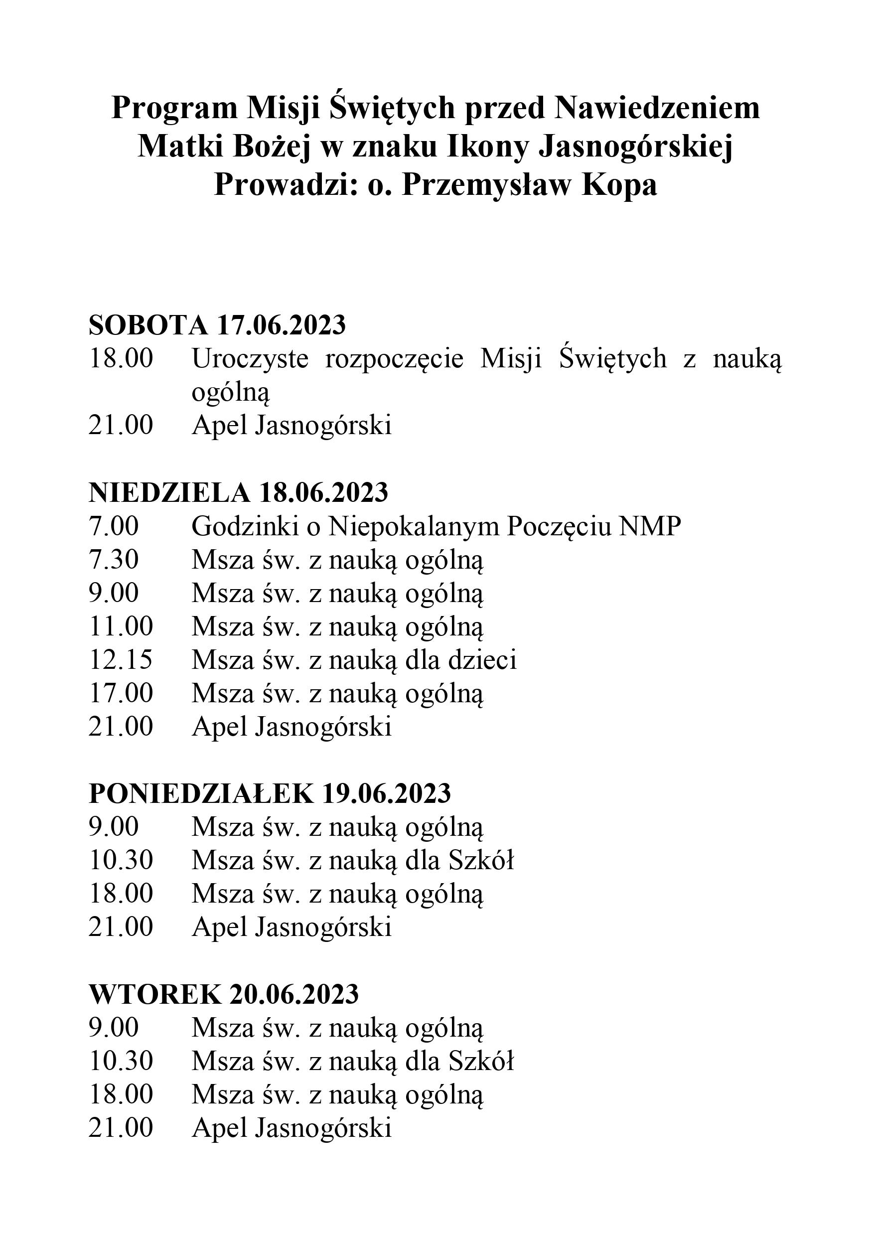 Uwaga: w czasie kolędy kancelaria czynna tylko w godzinach porannych.